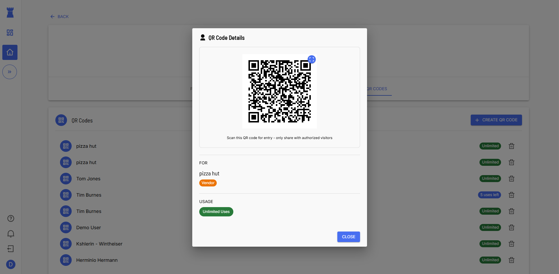 Residents can easily create access QR codes in Watchtower using pre-existing guest, vendor, or resident profiles. QR codes for guests and vendors automatically match their profile validity.