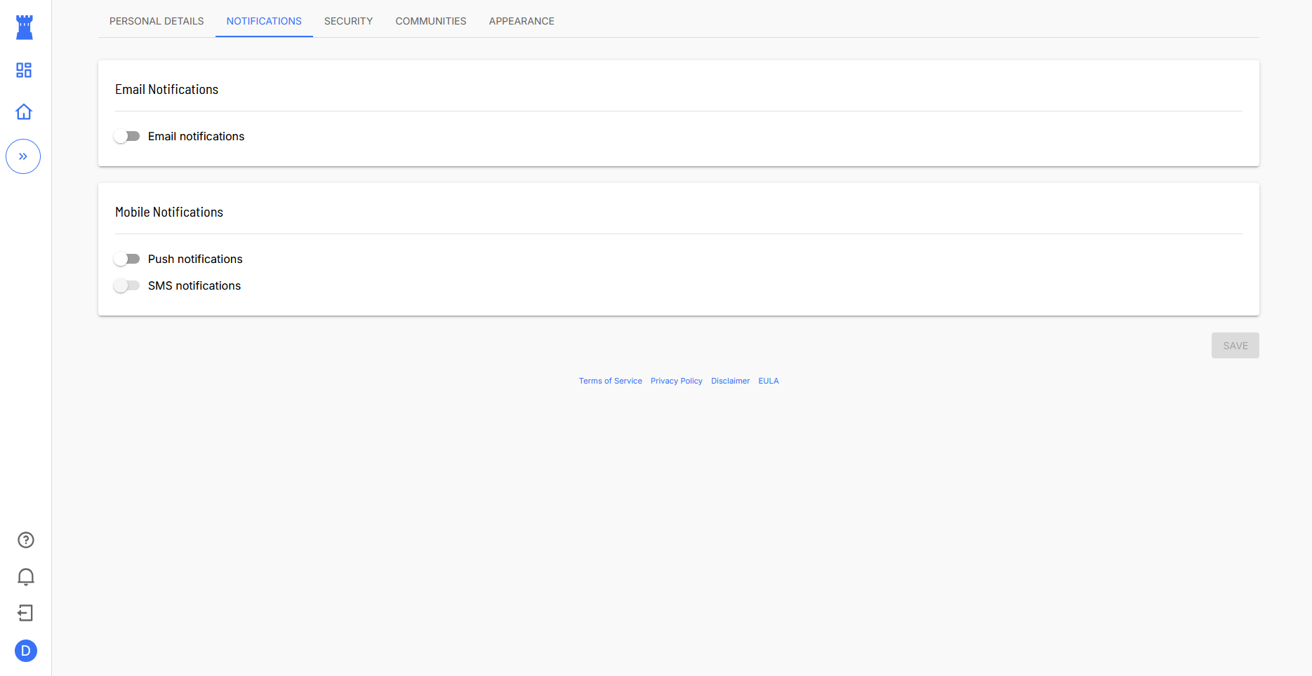 INFO: SMS notifications cannot be enabled at this time. This feature may be available in the future.