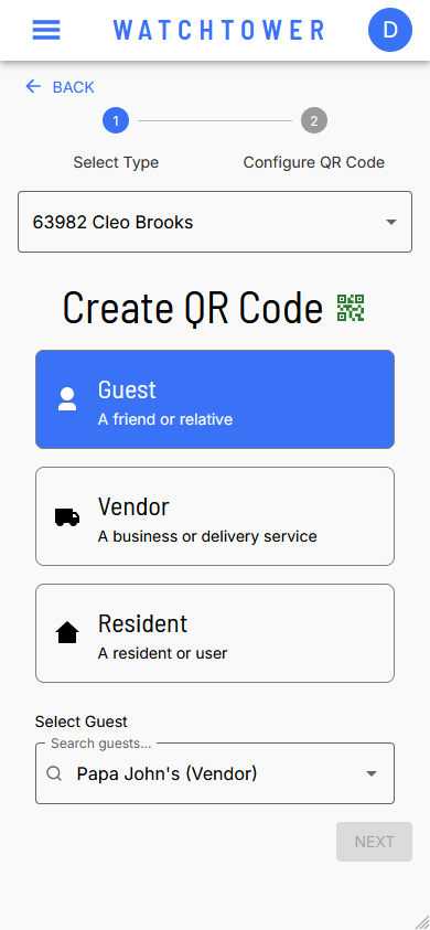 After creating a QR code, you can share it with your guest or vendor so they can use it at the gate. They can display the QR code on their phone for scanning.