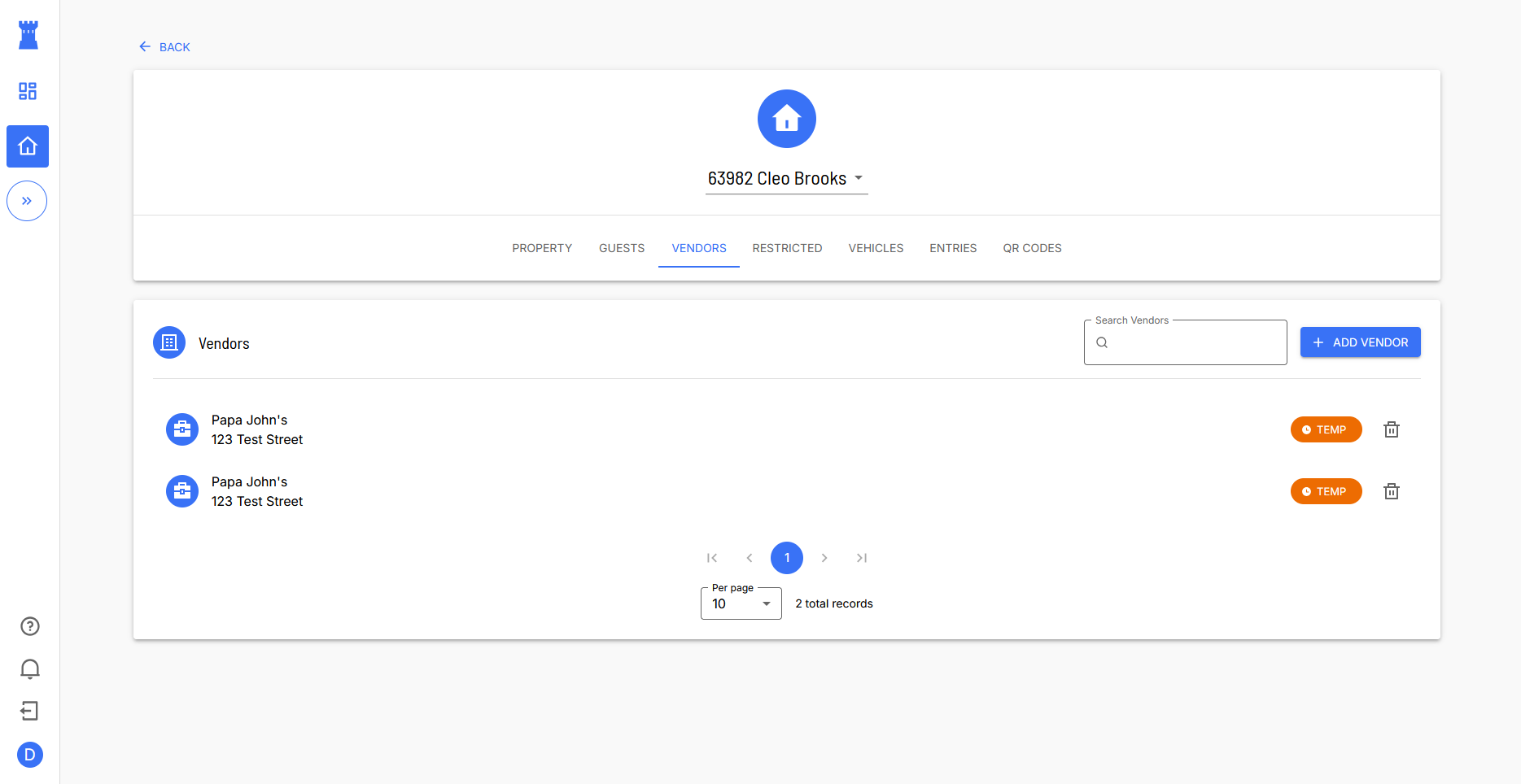 The Vendors tab is where you can add, edit, and remove vendors who are allowed to enter your community. Vendors are service providers like contractors, delivery services, landscapers, or repair technicians. This guide explains how to manage your vendor list.