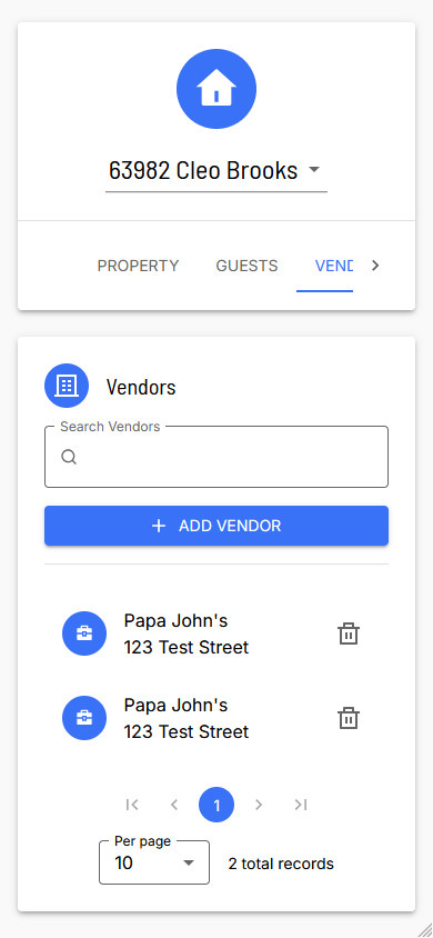 You'll see a list of all vendors assigned to your property. Use the search box to quickly find a specific vendor by name.