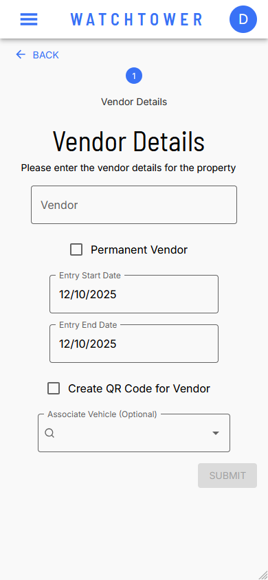 Temporary Vendors – Have access only during a specific date range. Once the end date passes, they can no longer enter. Temporary vendors display an orange "TEMP" badge on desktop.