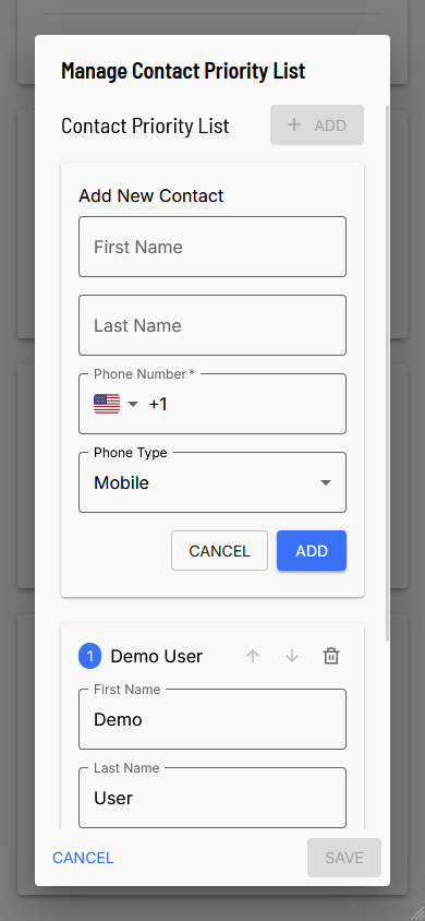 The order of contacts matters. Gate staff will call contacts in the order they appear on this list. Make sure your primary contact is listed first.