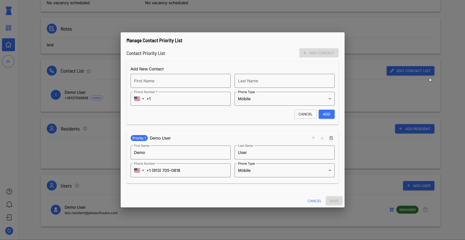 The Contact List shows phone numbers that gate staff can use to reach people at your property. This is important for verifying guests or handling entry issues.