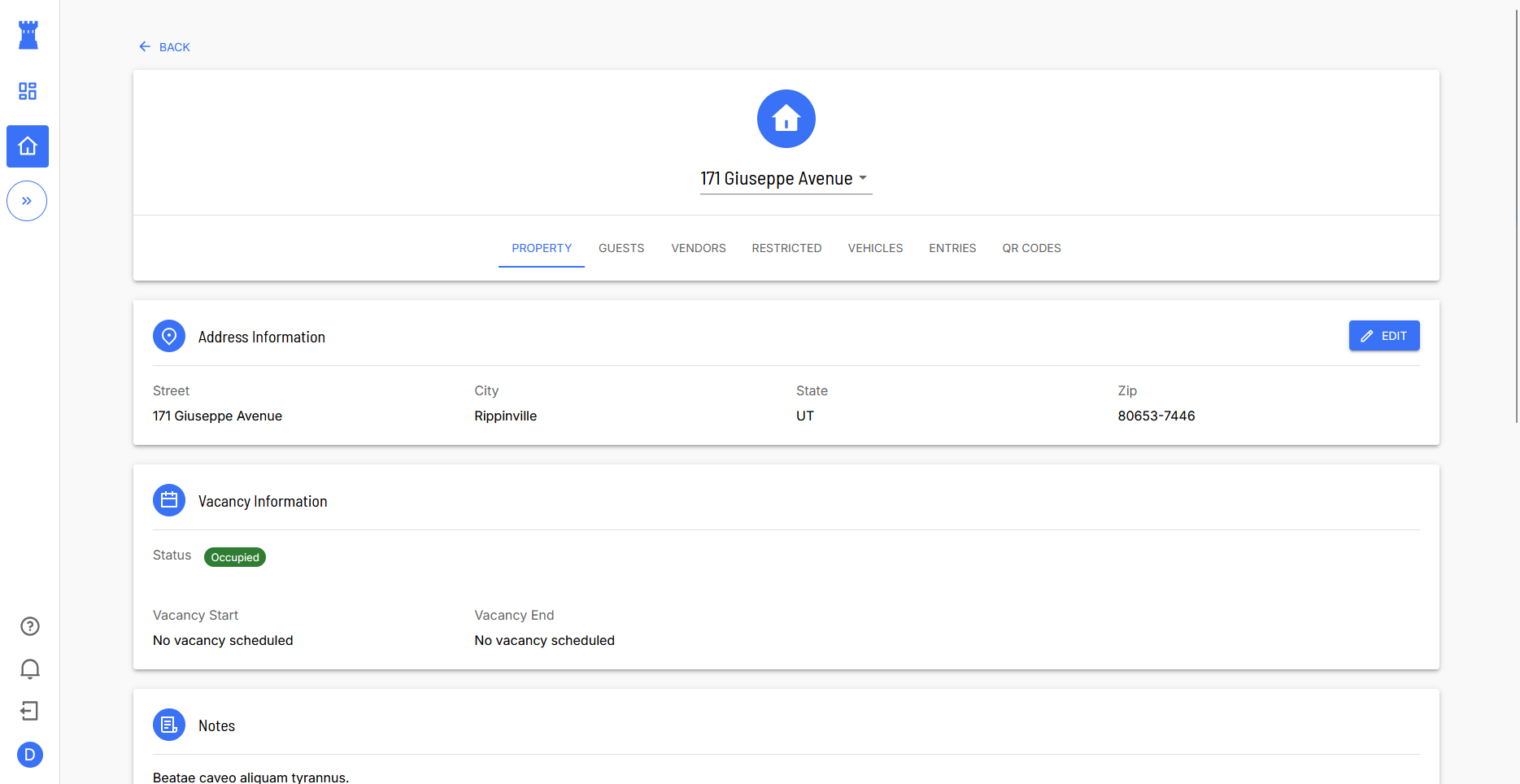 This section displays any notes that have been added to your property. Notes can be helpful for sharing important information with gate staff or property management.